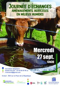 La journée est organisée chez deux agriculteurs ayant réalisés des aménagements, dans le cadre du contrat Sources en action, afin de réduire les dégradations causées par l’abreuvement direct du bétail au cours d’eau : abreuvoirs, points de franchissement et clôtures.